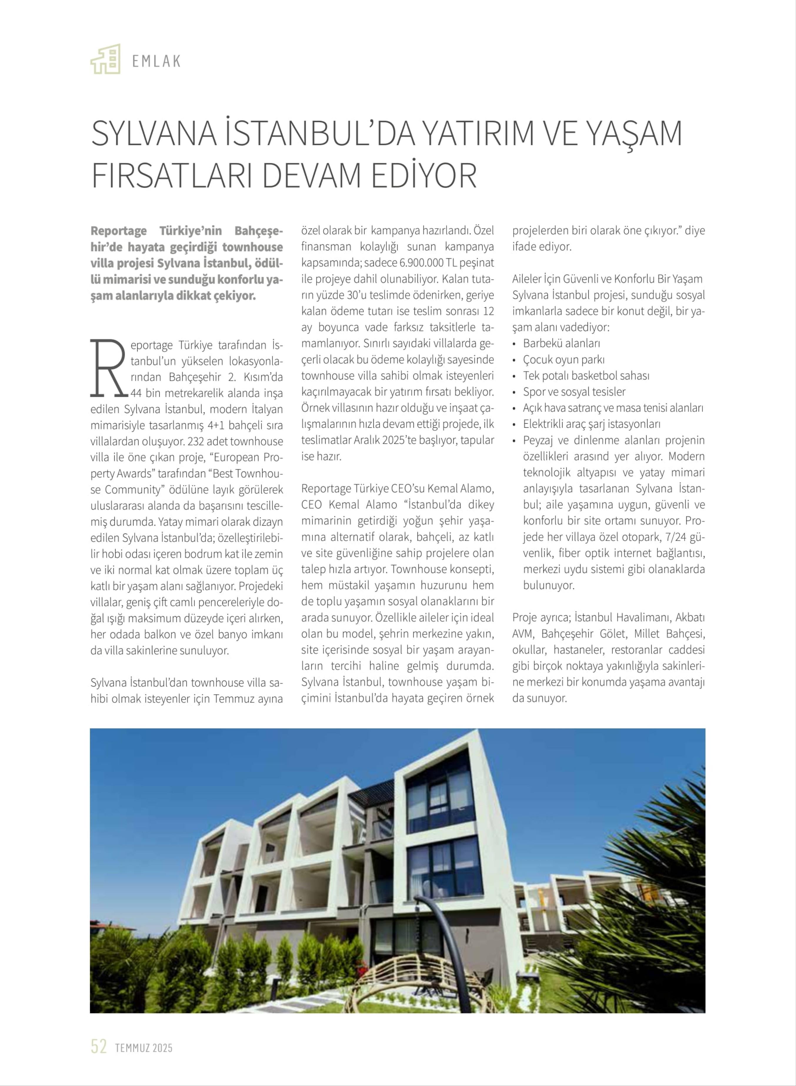 EMLAK Reportage Türkiye'nin Bahçeşehir'de hayata geçirdiği tovvnhouse villa projesi Sylvana İstanbul, ödüllü mimarisi ve sunduğu konforlu yaşam alanlarıyla dikkat çekiyor.